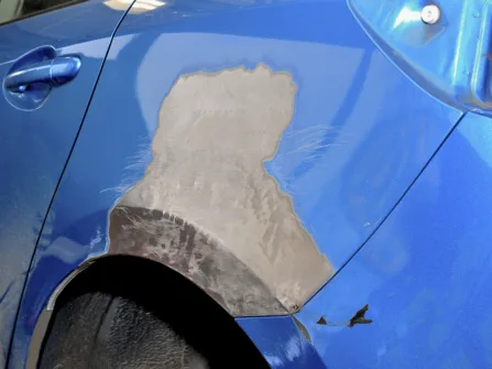 First, inspection is done and damage estimate begins. Then, the body of the car has to be stripped from rust.